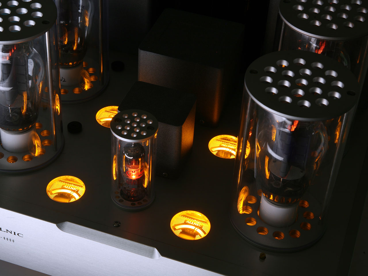 Der König der 300B Verstärker: Mit 50 Watt Ausgangsleistung bietet der ALLNIC AUDIO A-6000 eine Single-Ended Dynamik, wie man sie selten gehört hat. Hier paaren sich Wucht mit Finesse, Attacke mit Homogenität, Grobdynamik mit Detailverliebtheit. Die klanglichen Eigenschaften der A-6000 Monoblöcke können getrost als „state-of-the-art" bezeichnet werden und spiegeln die Erfahrung, Imaginations- und Innovationsfähigkeit des Entwicklers Kang Su Park in genialer Weise wieder. Die Referenzverstärker von ALLNIC AUDIO bieten ein Maß an Spielfreude wie es sich ein Musikhörer nur wünschen kann. Schönheit, Dramatik und Emotionalität, die Essenz der Musik wird hier vollendet wiedergegeben.