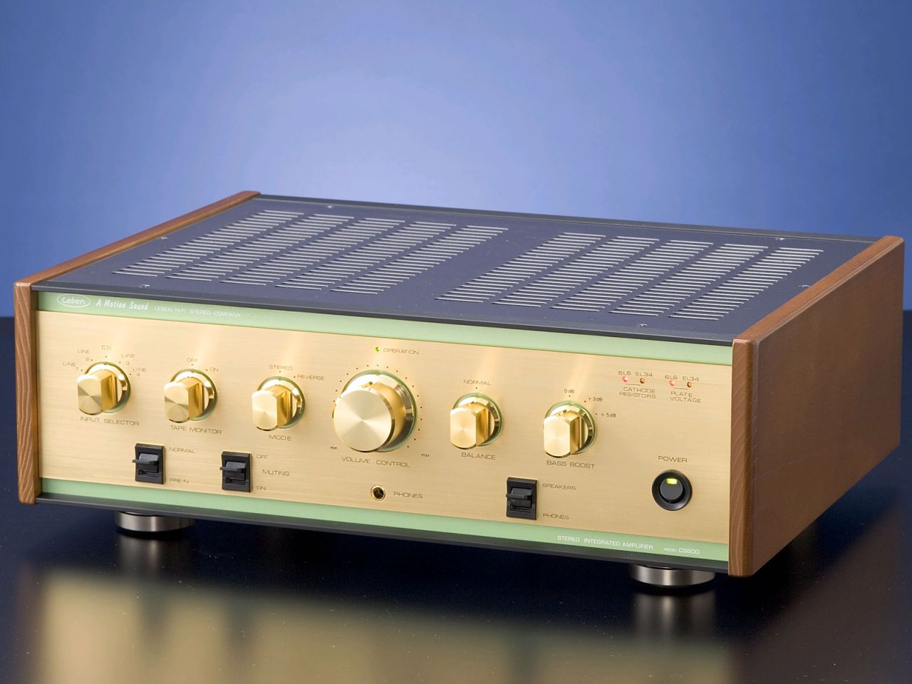 Der CS-600 ist das Flagschiff des LEBEN Vollverstärkersortiments. Nach dem großen Erfolg des CS-300 wollte Mr. Hyodo einen Vollverstärker bauen, der auch leistungshungrige Lautsprecher mit den überragenden klanglichen Attributen des CS-300 anzutreiben vermag. Nach zwei Jahren Entwicklungszeit war es schließlich soweit: Mit dem ausgewachsenen und schweren CS-600 setzt Mr. Hyodos neue Maßstäbe in Sachen Klang, Leistung und ... Flexibilität! Das Schaltungskonzept des CS-600 eröffnet nahezu unbegrenzte Möglichkeiten für die individuelle klangliche Anpassung an spezifische Hörgewohnheiten. So kann die werkseitig mit 6L6GC-/5881- Röhren ausgestattete Ausgangsstufe mit einer Vielzahl weiterer Röhrentypen wie 6CA7/EL34, 6550A, KT66, KT77, KT88 oder 350B bestückt werden. Der Einsatz von zwei Schaltern im Gehäuse ermöglicht ein rasches und einfaches Umstellen, eine LED-Anzeige in der Gehäusefront zeigt an, welche Röhren gerade in Betrieb sind. Um die berühmte Musikalität von LEBEN Komponenten auch in dieser Leistungsklasse entsprechend zur Geltung zu bringen, entschied man sich für den Einsatz eines überdimensionierten Netzteils und eine gleichgroßen (!) Siebdrossel. Auch die Verwendung der 6CJ3- Half-Wave Rectfier Röhre kommt dem besonders musikalischen Klangbild des CS-600 entgegen und sorgt gleichzeitig für eine geringe Belastung der Endröhren. Für die farbenprächtige Wiedergabe zeichnen nicht die üblichen 12XX7-/ECC8X-Derivate, sondern die 6CS7-Doppeltriode in der Vorstufe verantwortlich.
