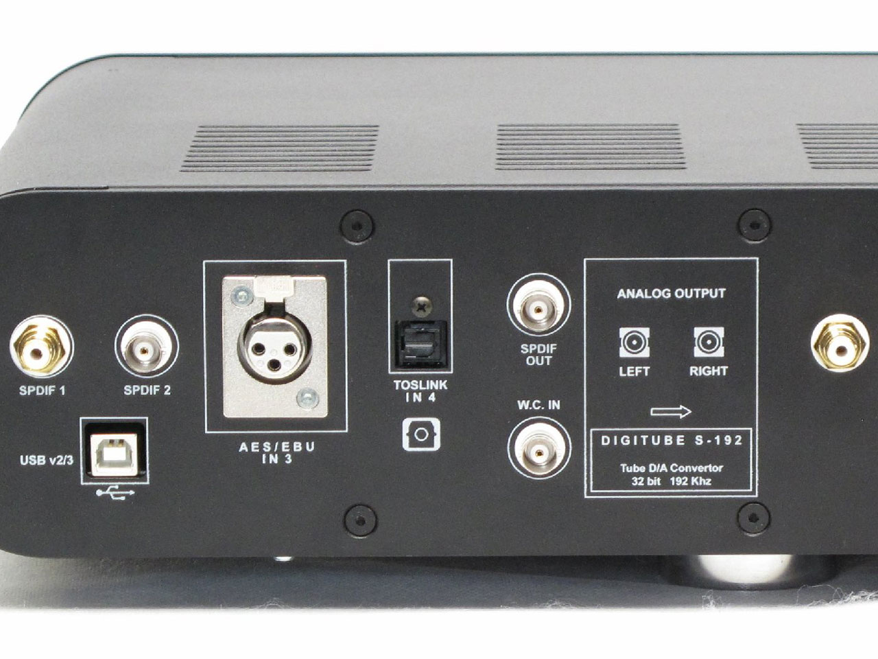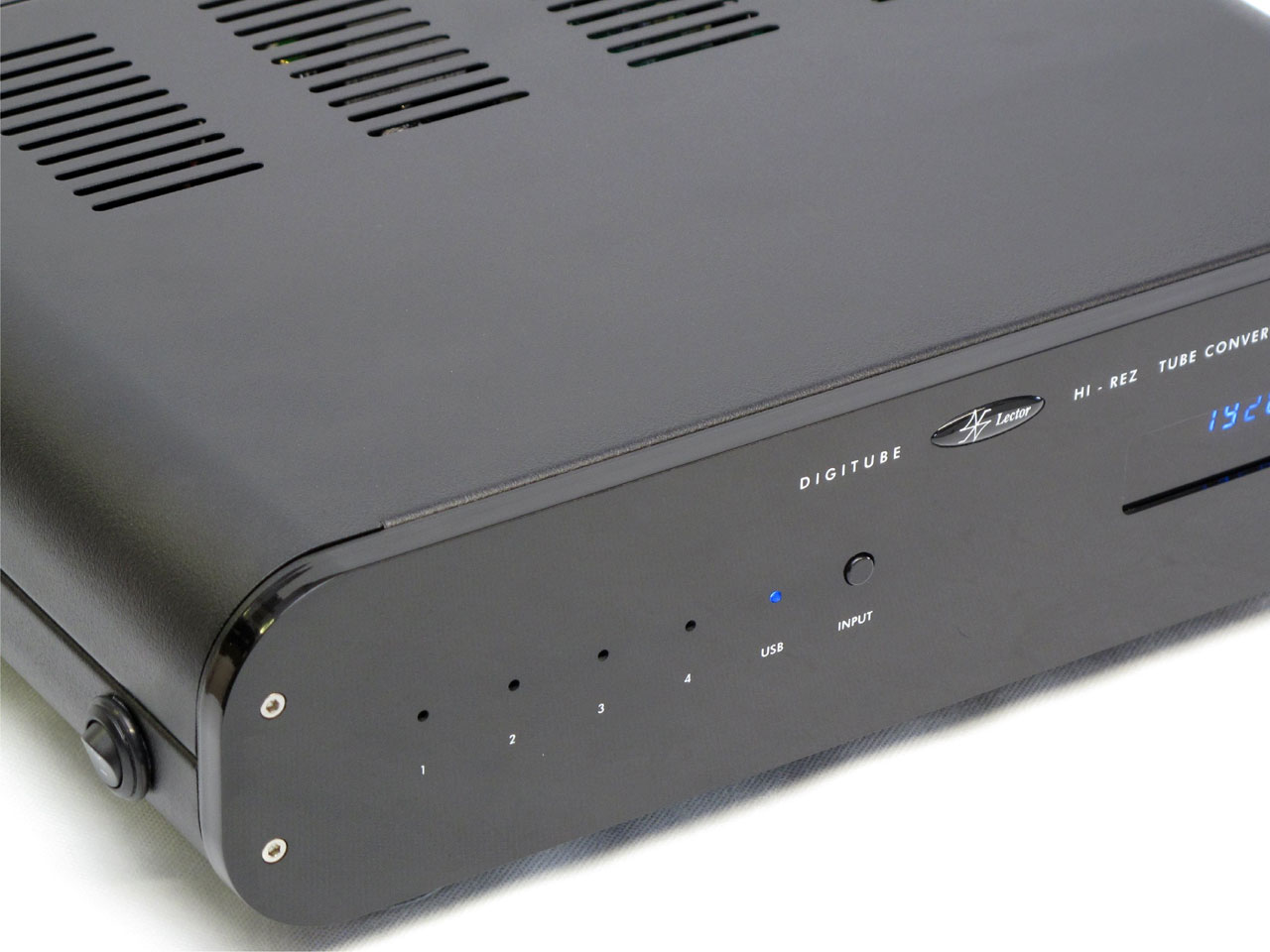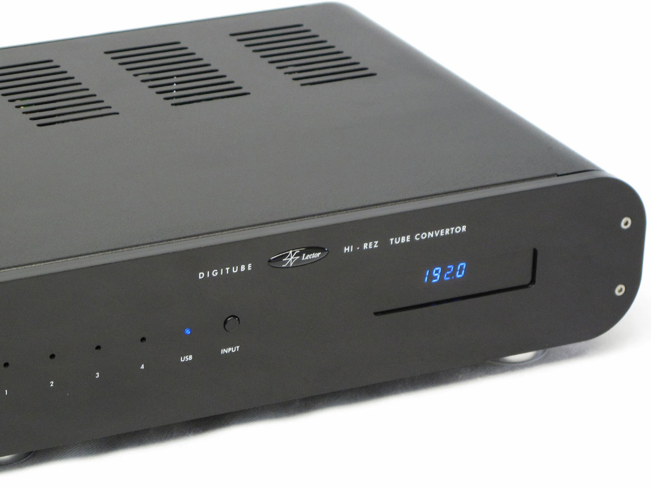The Lector Digitube S-192 is built into a chassis that's well styled without silly excess. A twopiece steel clamshell comprises the major portion of the enclosure, with steel front and rear panels and a sedately pretty faceplate of acrylic, with a tinted window for the digital display. The faceplate also includes a small pushbutton for toggling through input choices—the Digitube's only user control, apart from its side-mounted rocker power switch—and a row of five blue LEDs to indicate which input is currently in use. These correspond with five sets of rear-mounted input jacks: two electrical S/PDIF (RCA, BNC), one optical S/PDIF (TosLink), one AES/EBU (XLR), and, of course, one USB (Type B).